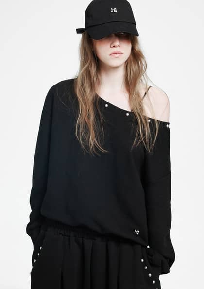 홀리 심볼 오프숄더 맨투맨 _ 블랙