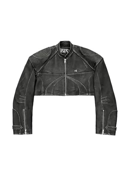 크롭 레이서 빈티지 양가죽 자켓